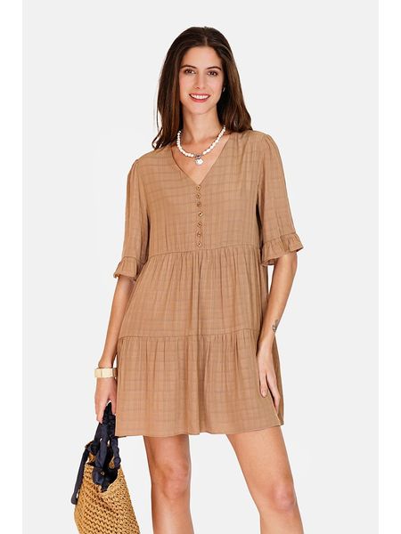 brązowe sukienki sukienki bez rękawów sukienki bez kołnierzyka sukienki mini odzież damska limango.pl sukienki z falbankami sukienki bez ramiączek sukienki ze sklepu limango.pl sukienki assuili odzież damska assuili