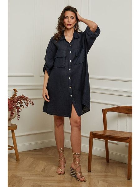 – czysty len- kołnierz: kent- dekolt: V- zapięcie: listwa guzikowa- zakończenie rękawów: patka i guzik- długość rękawa: 3/4- kieszenie: na piersi- krój: luźny- look: jednokolorowy
