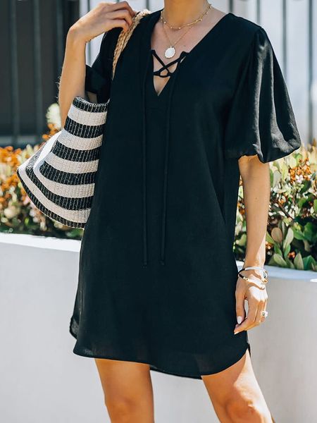 – dekolt: V- zapięcie: wiązane tasiemki- krój: luźny- look: jednokolorowyUwaga: Przy wyborze właściwego wariantu zaleca się korzystanie z tabeli rozmiarów.