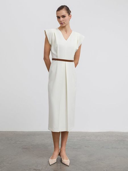 – dekolt: V- zapięcie: suwak na plecach- szlufki na pasek: tak- zdejmowany pasek: skóra syntetyczna- detale: ozdobna zakładka- krój: taliowany- look: jednokolorowyUwaga: Przy wyborze właściwego wariantu zaleca się korzystanie z tabeli rozmiarów.
