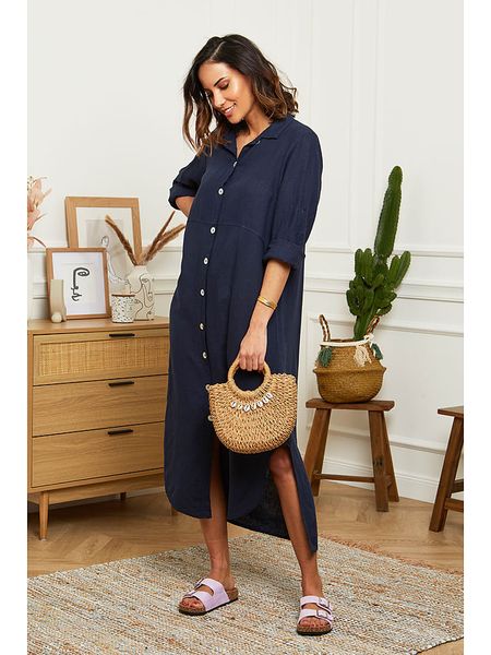 sukienki ze sklepu limango.pl sukienki le monde du lin odzież damska le monde du lin sukienki maxi sukienki bez rękawów sukienki bez ramiączek sukienki bez kołnierzyka sukienki z klasycznym kołnierzykiem niebieskie sukienki odzież damska limango.pl