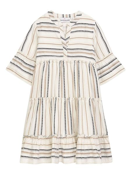 – dekolt: z rozcięciem- krój: luźny- wzór: paski