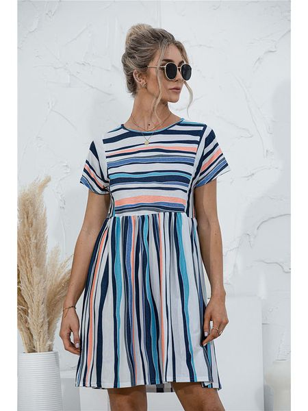 – dekolt: okrągły- krój: luźny- wzór: paski