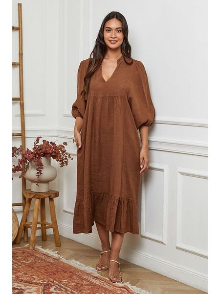 sukienki ze sklepu limango.pl odzież damska la compagnie du lin sukienki la compagnie du lin sukienki bez kołnierzyka sukienki maxi brązowe sukienki sukienki z falbankami sukienki bez rękawów odzież damska limango.pl sukienki bez ramiączek