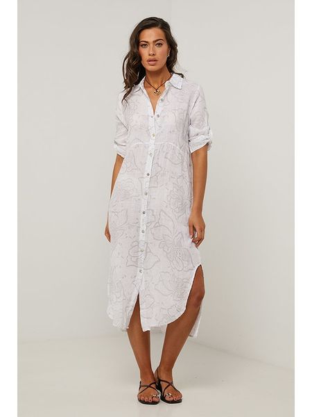 sukienki bez kołnierzyka sukienki le monde du lin sukienki bez rękawów sukienki midi sukienki na co dzień sukienki z klasycznym kołnierzykiem odzież damska limango.pl sukienki ze sklepu limango.pl białe sukienki sukienki proste