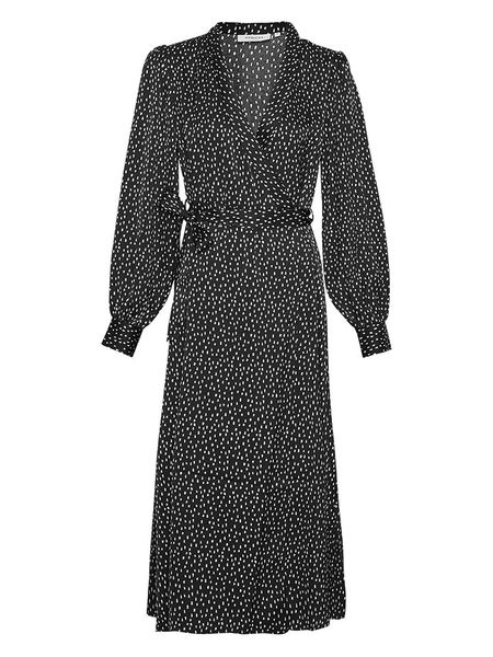 – z poliestru pochodzącego z recyclingu- dekolt: V- zdejmowany pasek: tkanina- zakończenie rękawów: guzik- krój: prosty- wzór: na całości