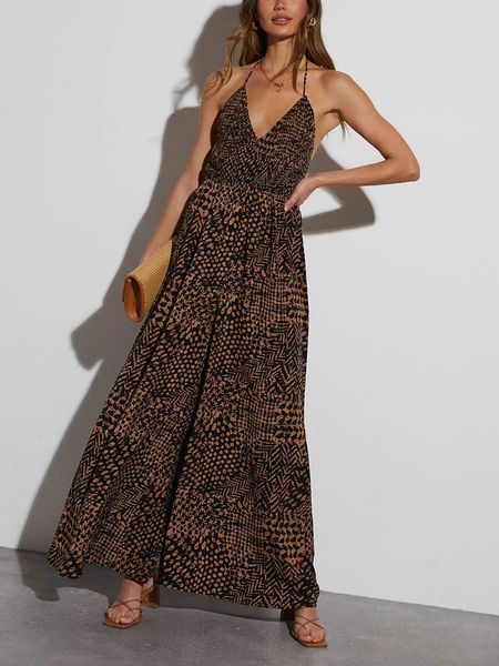 – ramiączka: na szyję- zapięcie: wiązane tasiemki- dekolt: V- krój: taliowany- wzór: graficzny