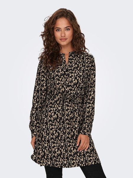 – z poliestru pochodzącego z recyklingu- dekolt: z rozcięciem- zapięcie: listwa guzikowa- zdejmowany pasek: tkanina- krój: prosty- wzór: na całości