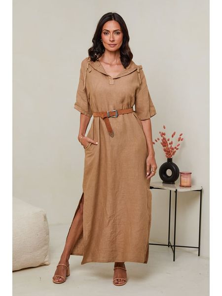 brązowe sukienki sukienki bez ramiączek sukienki ze sklepu limango.pl sukienki z kapturem sukienki bez kołnierzyka sukienki bez rękawów odzież damska limango.pl odzież damska le monde du lin sukienki le monde du lin sukienki maxi