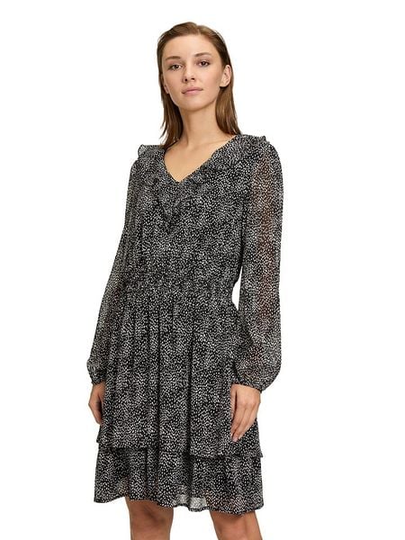 – dekolt: V- talia: elastyczna- zakończenie rękawów: elastyczne- dolny brzeg: z falbankami- krój: taliowany- wzór: na całości