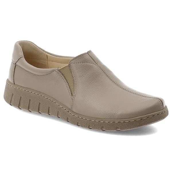 Półbuty damskie Wasak, płaskie skórzane na szeroką stopę z gumką w podbiciu, latte, 415N