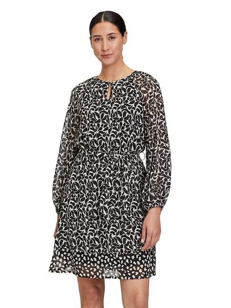 – dekolt: łezka- zdejmowany pasek: tkanina- szlufki na pasek: tak- zakończenie rękawów: elastyczne- dolny brzeg: z falbankami- krój: taliowany- wzór: na całości