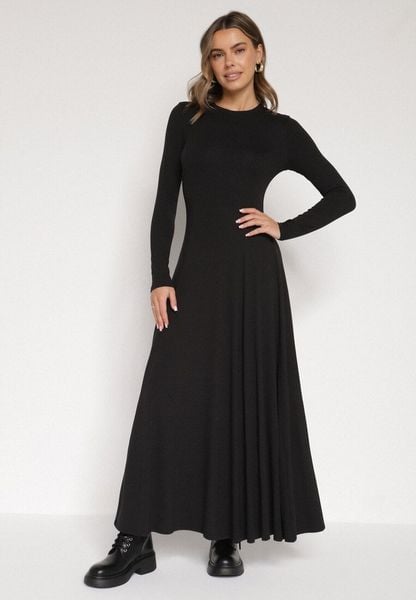 Czarna Bawełniana Sukienka o Rozkloszowanym Kroju Tuselenea