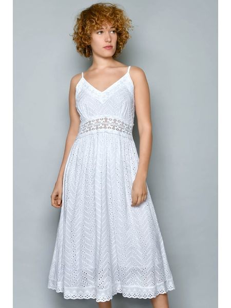 sukienki bez kołnierzyka sukienki rozkloszowane sukienki midi sukienki h.h.g. sukienki ze sklepu limango.pl sukienki bez rękawów odzież damska limango.pl białe sukienki odzież damska h.h.g. sukienki bez ramiączek
