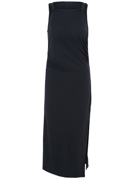 – dekolt: karo- dolny brzeg: z rozcięciem- krój: wąski- look: jednokolorowy