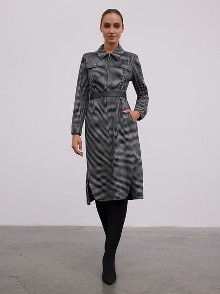 – kołnierz: kent- zapięcie: skrócony zamek błyskawiczny- kieszenie: na piersi- szlufki na pasek: tak- zdejmowany pasek: tkanina- kieszenie: wpuszczane- dolny brzeg: z rozcięciem- krój: taliowany- wzór: pepitkaUwaga: Przy wyborze właściwego wariantu zaleca się korzystanie z tabeli rozmiarów.