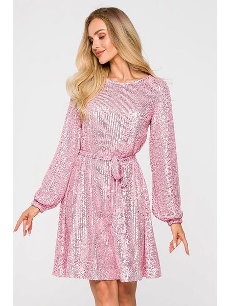 – dekolt: okrągły- rękaw: bufiasty – w talii wiązanie: tak – ściągacz: zakończenia rękawów- detale: cekiny- krój: litera A- look: jednokolorowy