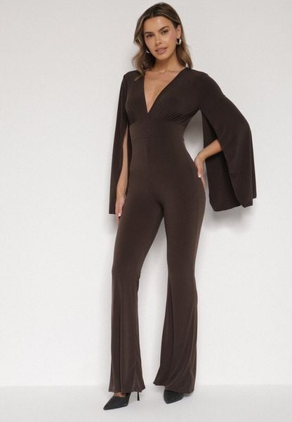Brązowy Długi Kombinezon z Szerokimi Rękawami i Odkrytymi Plecami Dasima