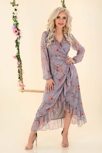 Długa Kopertowa Sukienka w Kwiaty