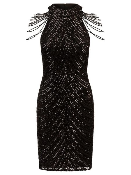 – dekolt: zakładki na ramionach- zapięcie: suwak na plecach- detale: cekiny- krój: wąski- look: jednokolorowy