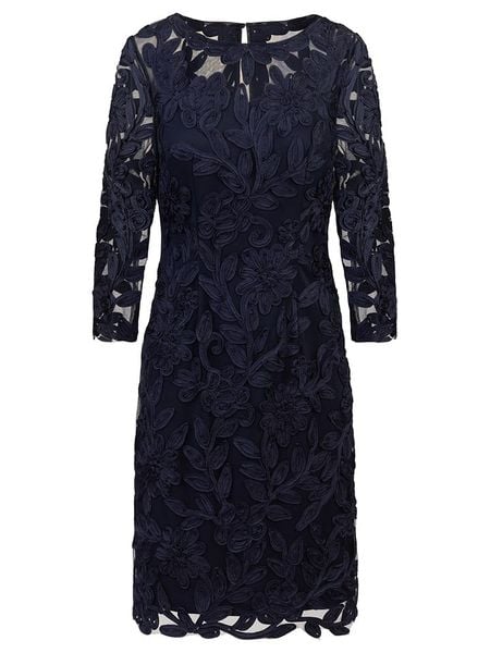 – dekolt: okrągły- zapięcie: suwak na plecach- długość rękawa: 3/4- detale: szydełkowana koronka- krój: taliowany- look: jednokolorowy