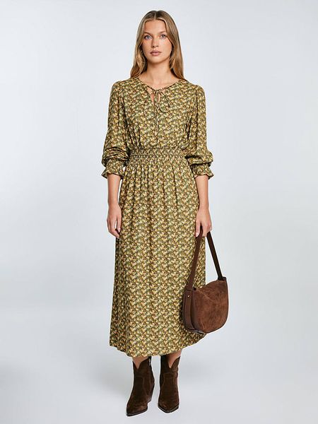 – czysta wiskoza- dekolt: z rozcięciem- talia: marszczona- zakończenie rękawów: marszczenie- detale: ozdobne wiązanie- krój: taliowany- wzór: na całości