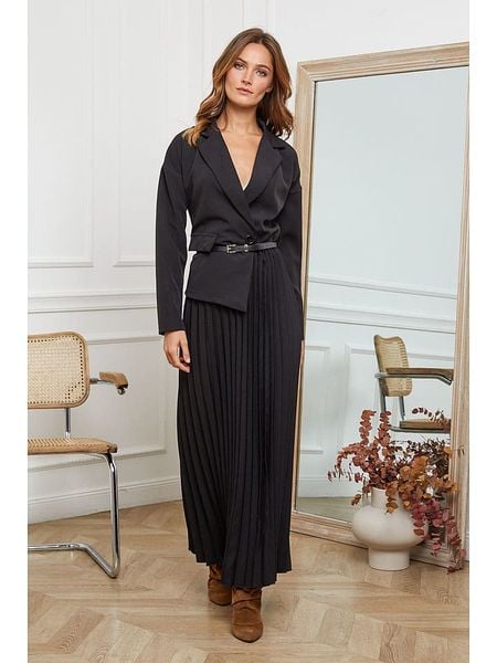 – dekolt: V- kołnierzyk: z klapami- zdejmowany pasek: skóra syntetyczna- krój: prosty- look: jednokolorowy