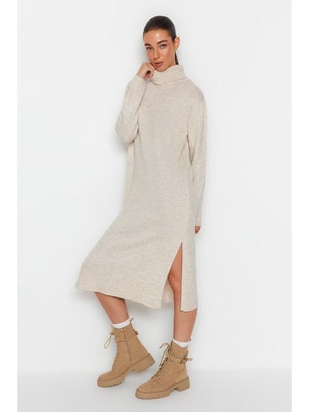 trendyol Sukienka dzianinowa w kolorze beżowym rozmiar: L
