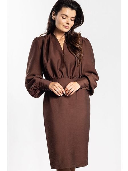 brązowe sukienki sukienki bez kołnierzyka odzież damska awama sukienki awama sukienki z dekoltem na plecach sukienki ze sklepu limango.pl sukienki bez ramiączek sukienki bez rękawów sukienki midi odzież damska limango.pl