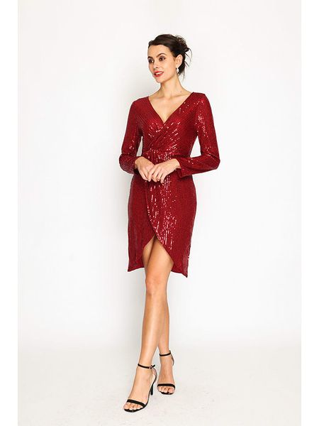 – dekolt: V- zapięcie: suwak na plecach- dolny brzeg: z rozcięciem- detale: cekiny- krój: taliowany- look: jednokolorowyWskazówka: Na metkach odzieży tej marki znajdują się rozmiary francuskie. Rozmiarówka została przez nas przeliczona. Podane do wyboru warianty rozmiarów odpowiadają standardowym europejskim rozmiarom konfekcji. Prosimy zapoznać się z zamieszczonym objaśnieniem rozmiarów.