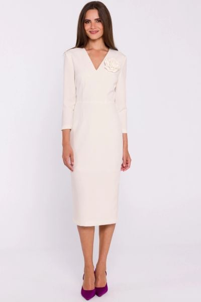 Elegancka sukienka ołówkowa z dekoltem V kremowa