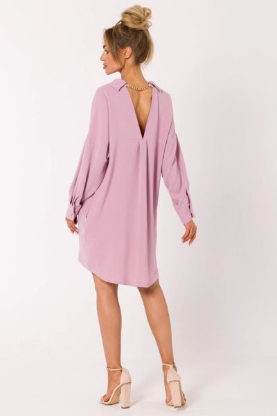 Sukienka koszulowa z dekoltem V na plecach różowa