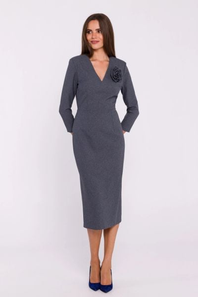 Elegancka sukienka ołówkowa z dekoltem V szara