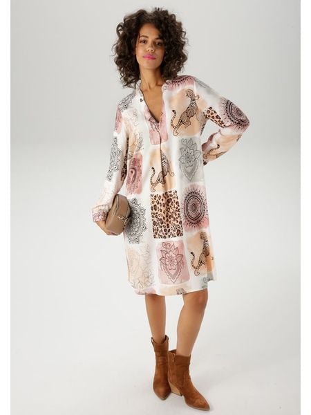 – czysta wiskoza- dekolt: z rozcięciem- krój: luźny- wzór: graficzny