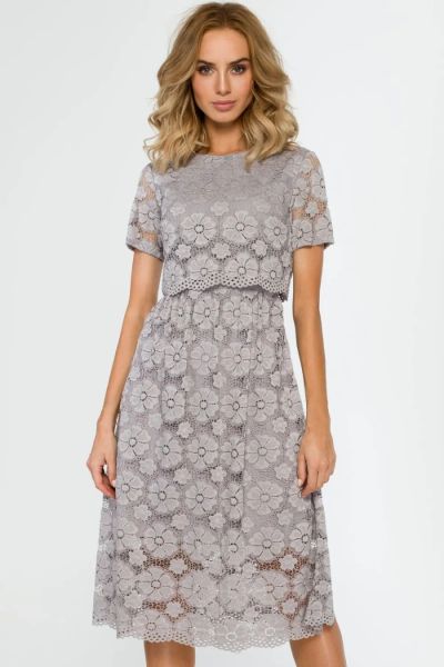 Sukienka na wesele koronkowa lekko rozkloszowana midi szara