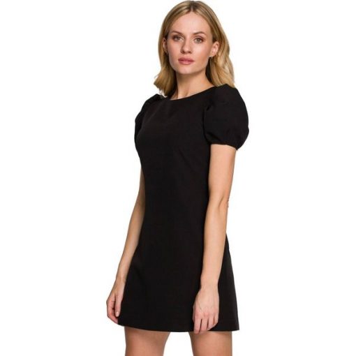 Elegancka sukienka mini krótkie bufiaste rękawy czarna