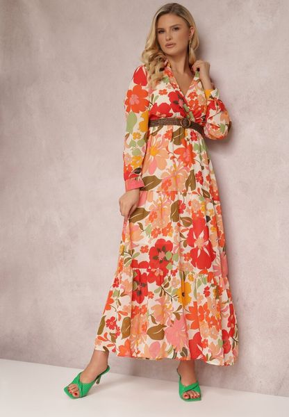 Sukienka Alceusa o klasycznej długości maxi, zakończona delikatnym, rozkloszowanym dołem. Zdobiona kobiecym wzorem w kwiaty. Wyposażona w pleciony pasek z klamerką, który idealnie zgrywa się z całością. Dodatkowo w pasie gumka, która podkreśla wcięcie w talii. Z głębokim, kopertowym dekoltem i długim rękawem. Szukasz kobiecej i efektownej kreacji na wiele okazji? Model Alceusa Cię zachwyci!