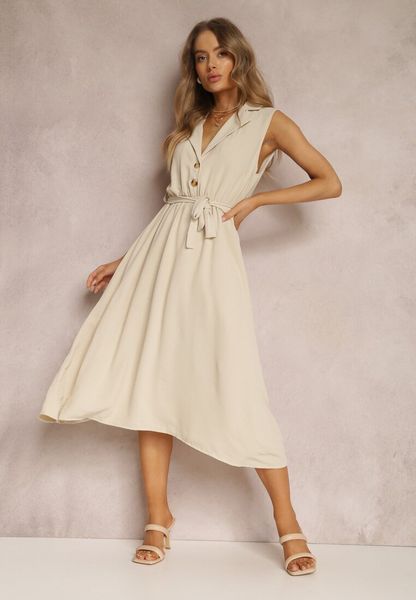 odzież damska renee.pl sukienki bez rękawów sukienki bez kołnierzyka brązowe sukienki sukienki midi sukienki ze sklepu renee.pl odzież damska renee sukienki renee sukienki z wykładanym kołnierzem sukienki dekolt w kształcie v