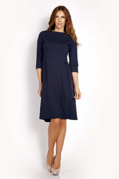 Granatowa Sukienka Rozkloszowana z Rękawem 3/4