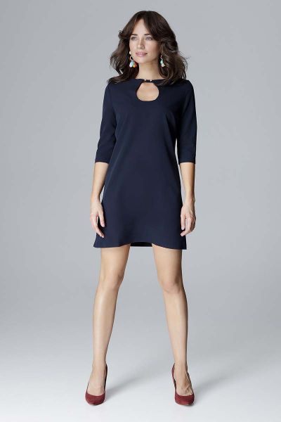 Granatowa Wizytowa Rozszerzana Sukienka z Łezką przy Dekolcie