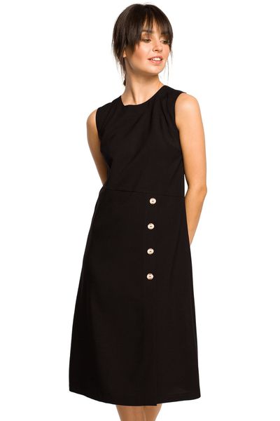 Lniana sukienka trapezowa na lato bez rękawów czarna z guzikami