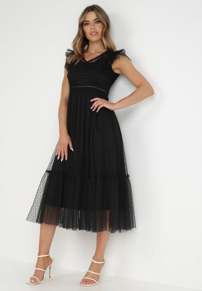 Sukienka Aedusa to koktajlowy fason z modnym tiulowym dołem w kropki. Góra z trójkątnym dekoltem, udekorowana koronką i siateczką. Krótki rękaw imituje doszyta przy ramionach falbanka. Przy dekolcie i w tali ażurowa lamówka. Zapinana na ukryty zamek błyskawiczny z boku. Posiada elastyczną podszewkę. Długość midi, rozkloszowana. Dodaj do niej szpilki lub sandały na obcasie, a […]