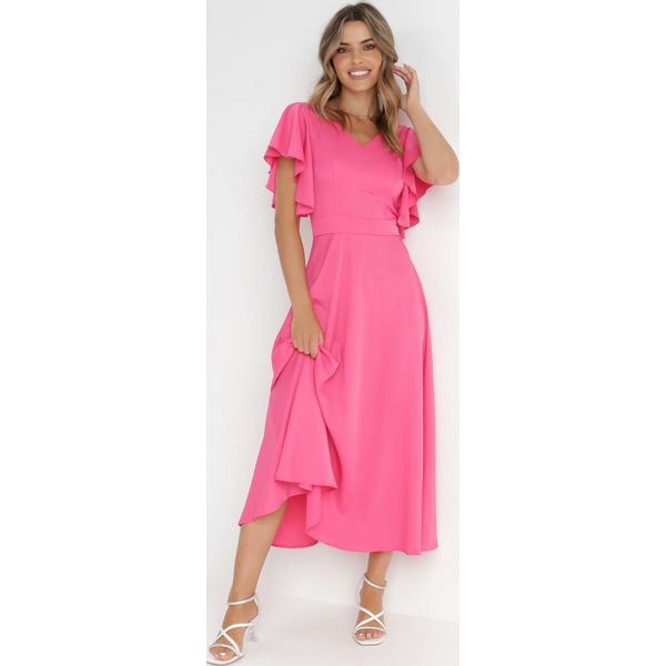 Fuksjowa Rozkloszowana Sukienka Zdobiona Falbanami Emilienne