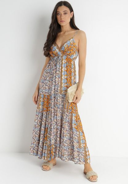 Sukienka Olynome w patchworkowym stylu. Model z głębokim, kopertowym dekoltem. Zawieszona na cienkich, regulowanych ramiączkach. Długość maxi z falbanką na dole. Nie posiada podszewki. Wykonana z lekkiej wiskozy. Lekko rozkloszowana. W pasie wszyta gumka, która po rozciągnięciu mierzy: S/M = 93 cm, L/XL = 97 cm. Ta letnia sukienka sprawdzi się idealnie w stylizacji boho […]