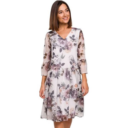 – dekolt: V- krój rękawów: rozszerzany do dołu – krój: luźny – wzór: kwiatowy- wykończenie: delikatnie prześwitujące