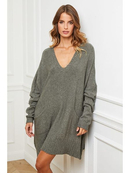 Joséfine Sukienka dzianinowa „Farjo” w kolorze oliwkowym rozmiar: XL