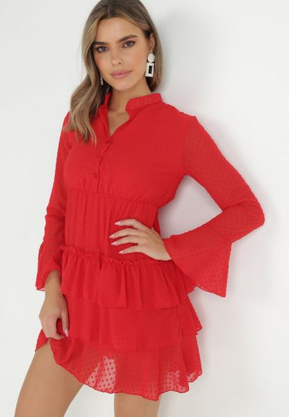 sukienki bez rękawów sukienki rozkloszowane sukienki z falbankami czerwone sukienki odzież damska born2be.pl odzież damska born2be sukienki bez kołnierzyka sukienki ze sklepu born2be.pl sukienki bez ramiączek sukienki mini
