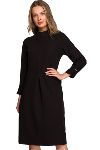 Sukienka elegancka pudełkowa z dekoracyjnymi zaszewkami czarna