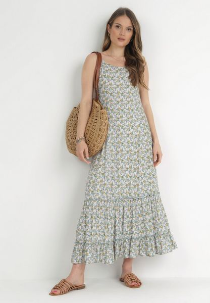 Zielona Rozkloszowana Sukienka z Wiązanymi Ramiączkami i Odkrytymi Plecami Ratta