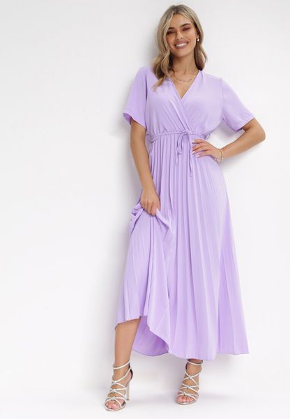 Fioletowa Sukienka Plisowana Maxi z Wiązanym Paskiem Dianiza